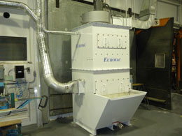 Eurovac Wet Scrubbers purify air by a combination of centrifugal forces and violent mixing of water and contaminated air. As the air stream passes the fixed baffles, the particulate is separated by a heavy, turbulent curtain of water created by high velocity air. The centrifugal force caused by the rapid changes in airflow direction forces the dust particles to penetrate the water droplets and become entrapped. The contaminated water is then removed from the airstream by special mist filters. Dust, as sludge, settles to the collector bottom and the water is reused. Eurovac Wet Scrubbers are specifically designed for safe collection of potentially explosive and volatile materials and are very effective in the capture of fine metal particles. They meets the National Fire Protection Association (NFPA 484 – 2006) guidelines for processing and finishing aluminum. Since the Eurovac Wet Scrubbers also meets OSHA and NFPA regulations for dust removal located inside buildings, they can recirculate in-plant, tempered air to conserve energy. Applications: Removes Respirable Dust and Contaminates from Sanding, Grinding, Deburring, Polishing, Packaging, and Processing Aircraft Maintenance, Repair, and Overhaul Operations Electrical, Communication, and Lighting Enclosure Manufacturers U.S. Military Operations Milling, Refining, and Ceramics Foundries Chemicals, Rubber Products, and Plastics Features: TEFC Motors, Single and Three Phase Direct Drive/Non-overloading Fan Interior Baffle Section Special Mist Filters Low Maintenance Electronic Water Level Control Galvanized Steel Construction with Two-Part Cold Tar Epoxy Coatings to all Interior Wet Surfaces Industrial Enamel “Gulf Blue” Coating on Exterior Magnehelic Gauge Automatic Fill System: Electrical solenoid only allows make up water to enter unit when blower is on. Automatic electronic float valve controls level of water when unit is running. Cut-off valve isolates unit for service. Pressure regulator. Manual fill override switch for initial filling of water. Magnetic Motor starter with push button on/off and overload protection.